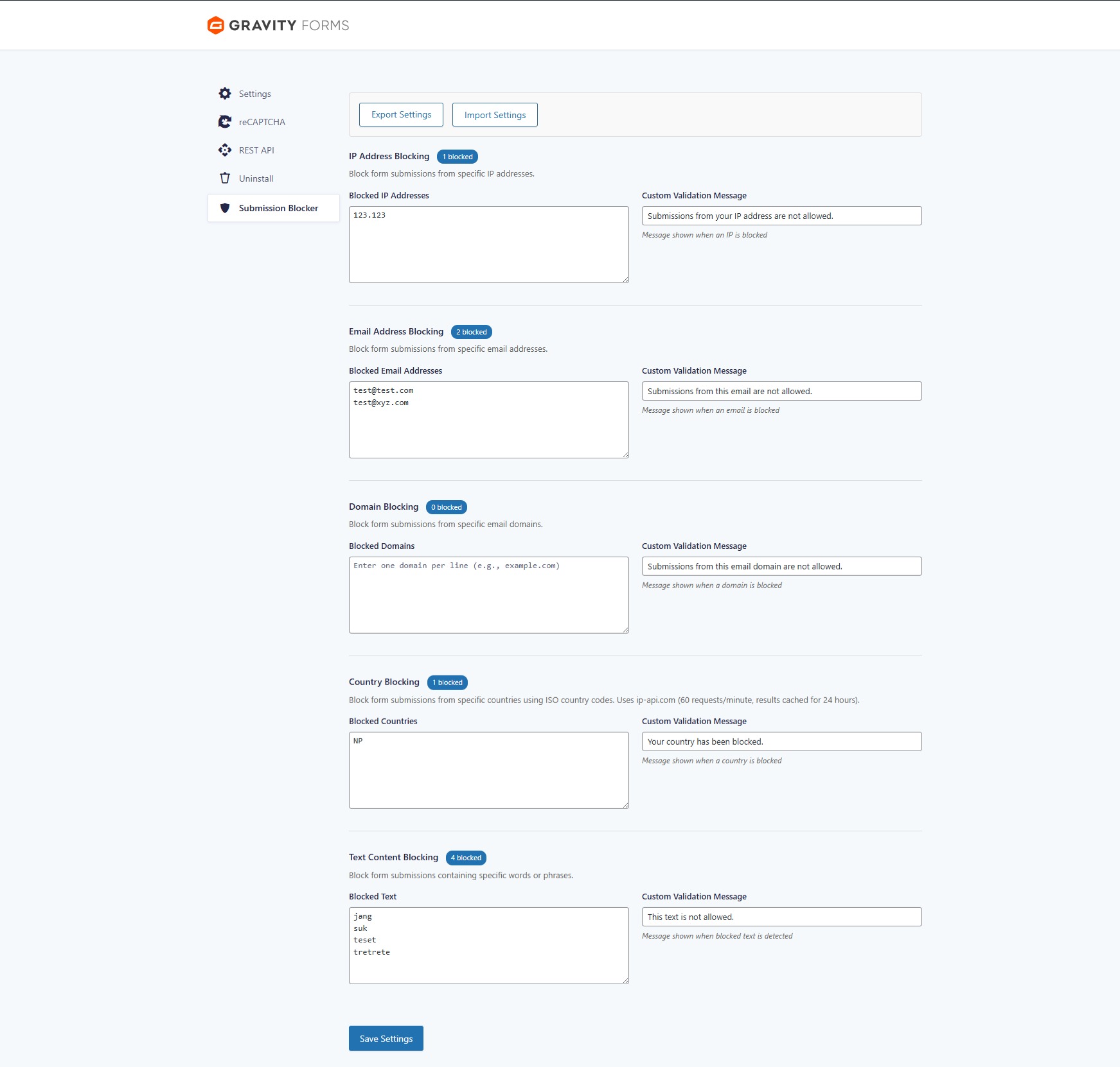 - Go to Forms Settings Submission Blocker.
